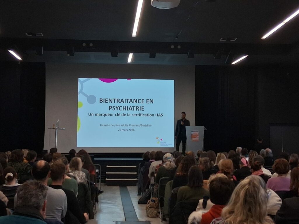 Ce jeudi 26 mars a eu lieu à Villefontaine la 2e journée de pôle adulte de l’Etablissement de Santé Mentale des Portes de l’Isère. Organisée par une équipe menée par le docteur Aderet, la journée a rassemblé environ 200 participants. Patients, partenaires, et collaborateurs de l’ESMPI se sont réunis dès 8h30 pour vivre une journée autour de la Bientraitance en psychiatrie. Cette journée a été voulue comme la première pierre d’un développement de la culture de la Bientraitance au sein de l’Etablissement de Santé Mentale des Portes de l’Isère.